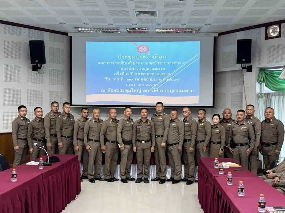 ประชุมประจำเดือน ครั้งที่ 2 ปีงบประมาณ 2568 และการประดับเครื่องหมายยศข้าราชการตำรวจสถานีตำรวจภูธรแม่