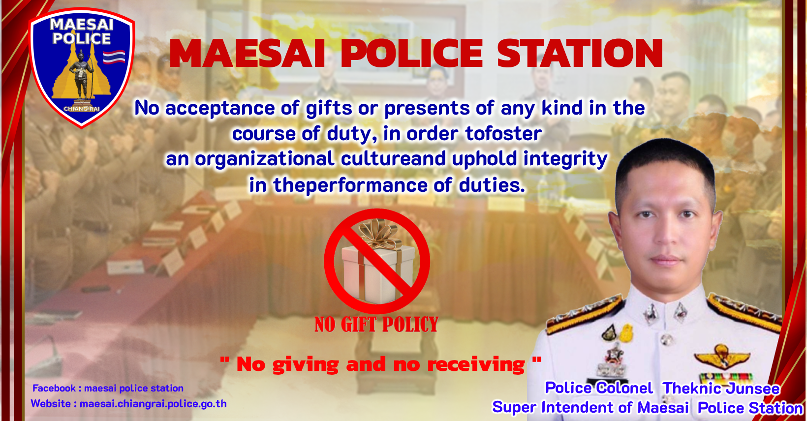 ประกาศเจตนารมณ์ไม่รับของขวัญและของกำนัลทุกชนิดจากการปฏิบัติหน้าที่ (No Gift Policy) ประกาศเจตนารมณ์ไ