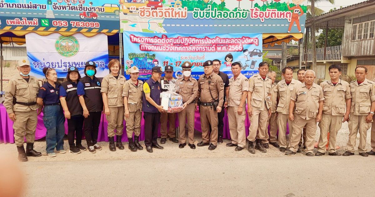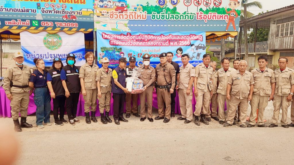 วันที่ 13 เมษายน 2566 เวลา 11.30 น. พ.ต.อ.ณัฏฐวุฒิ ยุววรรณ รอง ผบก.ภ.จว.เชียงราย ตรวจเยี่ยมศูนย์ปฏิบัติการความปลอดภัยทางถนนและลดอุบัติเหตุช่วงสงกรานต์ 2566 ณ ศูนย์ อปพร.หมู่ 1 ต.ห้วยไคร้ อ.แม่สาย จว.เชียงราย