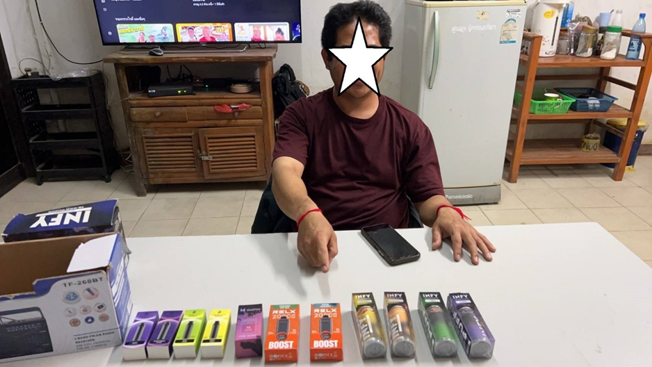 ร.ต.อ.วีรวิชญ์ บัวสันเทียะ รอง สวป.สภ.แม่สายนำกำลัง จับกุมผู้จำหน่ายบุหรี่ไฟฟ้านำส่งพนักงานสอบสวน สภ.แม่สาย ดำเนินคดีตามกฎหมาย (1 มี.ค.2568)