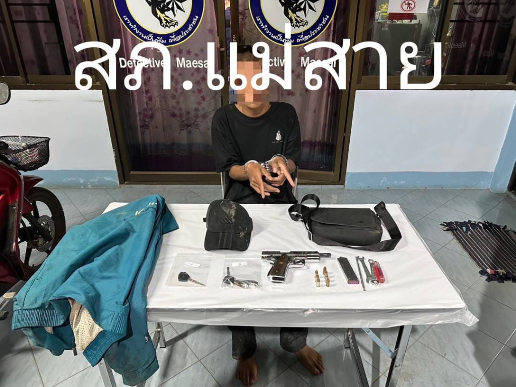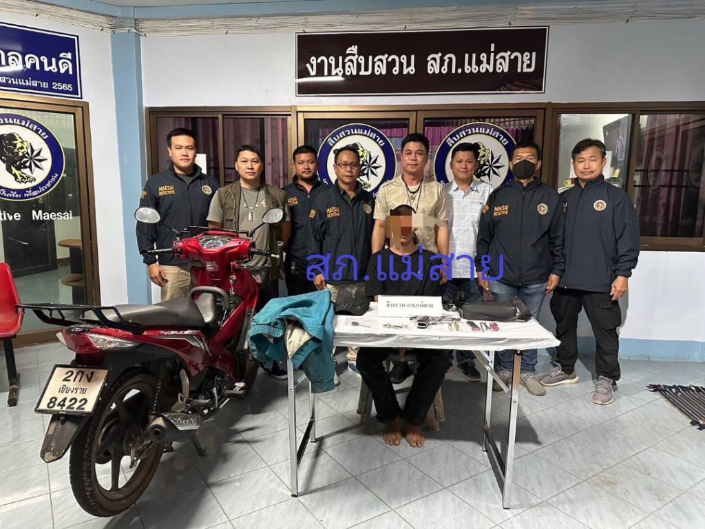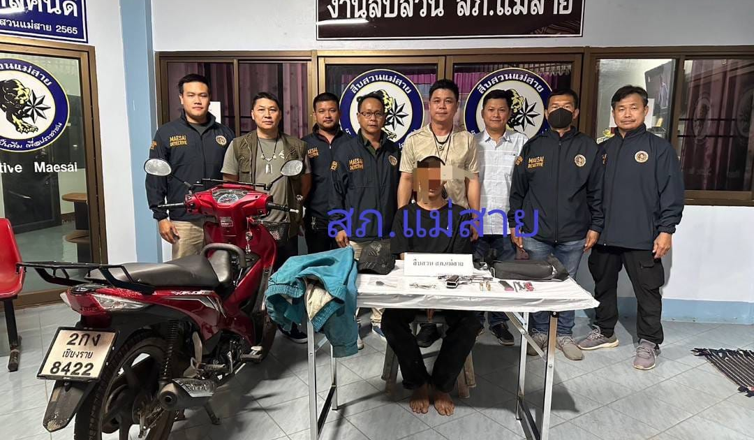 วันที่ 22 มีนาคม 2567 หมู่บ้านจ้องเด่น ม.10 ต.โป่งผา อ.แม่สายจว.เชียงราย ได้จับกุมผู้ต้องหา นาย อายุ 20 ปี ที่อยู่ จังหวัดท่าขี้เหล็ก ประเทศเมียนมา โดยกล่าวหาว่า“ร่วมกันลักทรัพย์ในเคหสถาน” “มีอาวุธปืนและเครื่องกระสุนปืนไว้ในครอบครองโดยไม่ได้รับอนุญาต,พาอาวุธปืนติดตัวไปในเมือง หมู่บ้านหรือทางสาธารณะโดยไม่ได้รับใบอนุญาต” “เป็นบุคคลต่างด้าวหลบหนีเข้ามาและอยู่ในราชอาณาจักรโดยไม่ได้รับอนุญาต ”