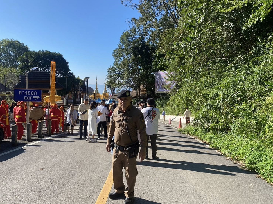 สภ.แม่สาย 10 พฤศจิกายน 2567 สายตรวจ ห้วยไคร้ สภ.แม่สาย อำนวยความสะดวกด้านการจราจรและรักษาความสงบเรียบร้อยพิธีถวายผ้ากฐิน วัดพระธาตุดอยตุง เหตุการณ์ทั่วไปปกติ