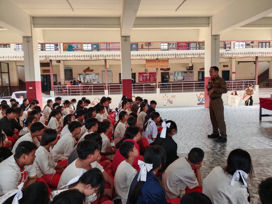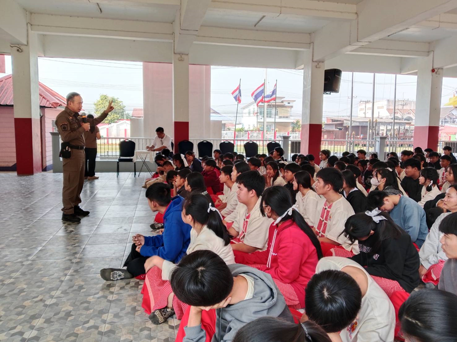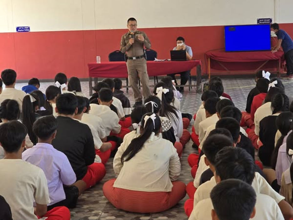 สภ.แม่สาย ภ.จว.เชียงราย 7 มี.ค.2568 เวลา 14.30 น. ภายใต้การอำนวยการของ ทพ.ต.อ.เทคนิค จันสี ผกก.สภ.แม่สาย พ.ต.ท.ธนากร ธินะ รอง ผกก.ป.สภ.แม่สาย มอบหมายให้ พ.ต.ต.สันทัด ต่างเพ็ชร สวป.(ชส.)สภ.แม่สาย ร.ต.ท.ประยงค์ ทองใจ รอง สว.(ป.)สภ.แม่สาย เป็นวิทยากรร่วมบรรยายกฏหมายเสพติด อบายมุข และบุหรี่ไฟฟ้า ณ โรงเรียนบ้านสันทราย ต.แม่สาย อ.แม่สาย จว.เชียงราย