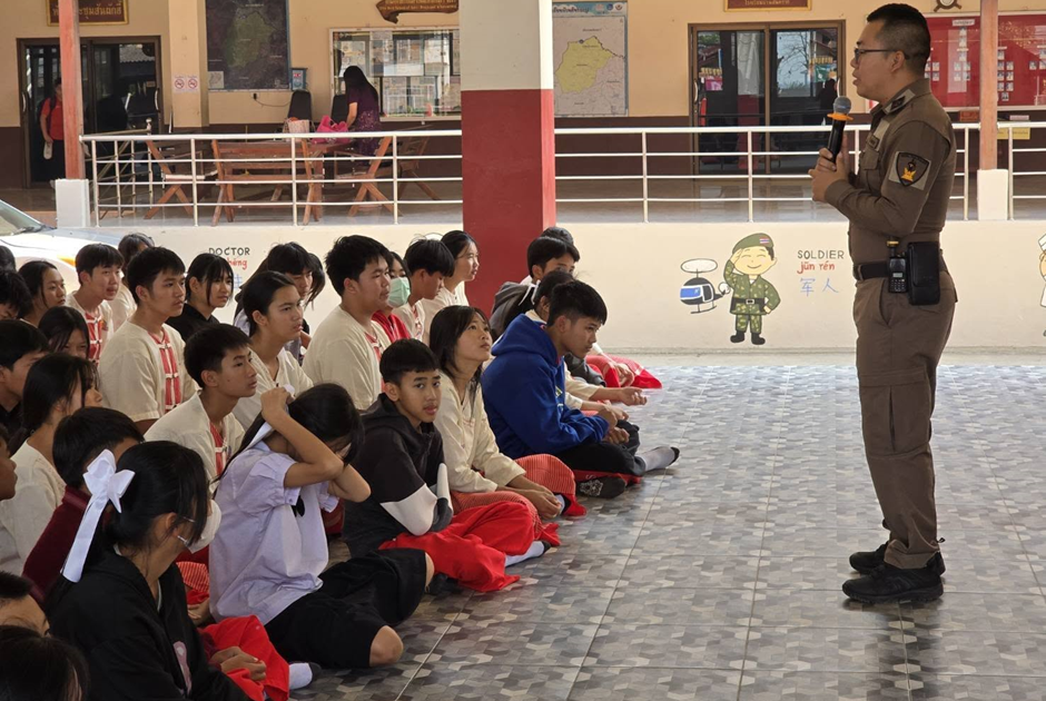 สภ.แม่สาย ภ.จว.เชียงราย 7 มี.ค.2568 เวลา 14.30 น. ภายใต้การอำนวยการของ ทพ.ต.อ.เทคนิค จันสี ผกก.สภ.แม่สาย พ.ต.ท.ธนากร ธินะ รอง ผกก.ป.สภ.แม่สาย มอบหมายให้ พ.ต.ต.สันทัด ต่างเพ็ชร สวป.(ชส.)สภ.แม่สาย ร.ต.ท.ประยงค์ ทองใจ รอง สว.(ป.)สภ.แม่สาย เป็นวิทยากรร่วมบรรยายกฏหมายเสพติด อบายมุข และบุหรี่ไฟฟ้า ณ โรงเรียนบ้านสันทราย ต.แม่สาย อ.แม่สาย จว.เชียงราย