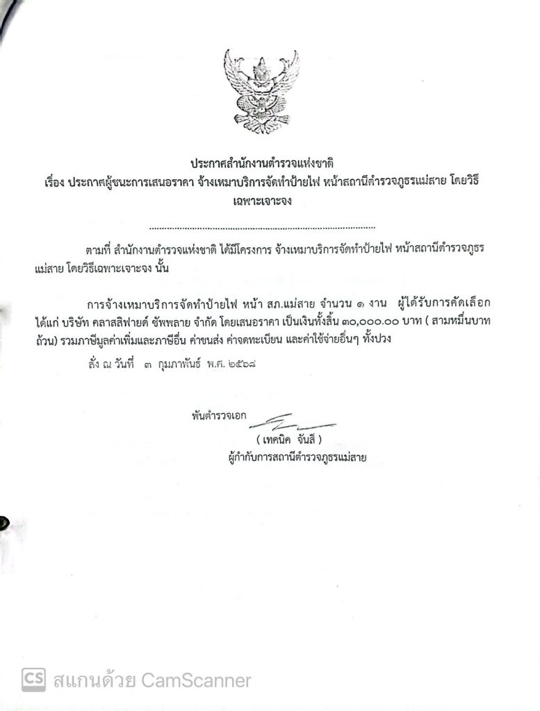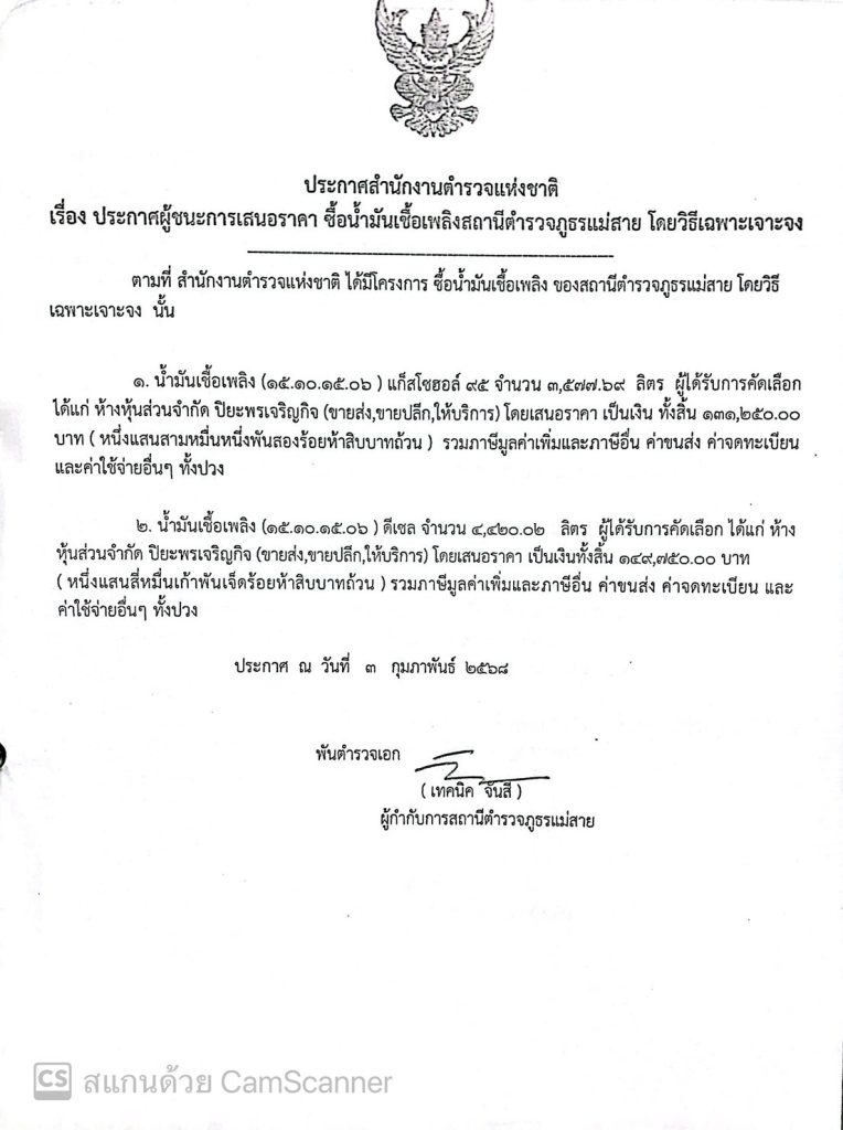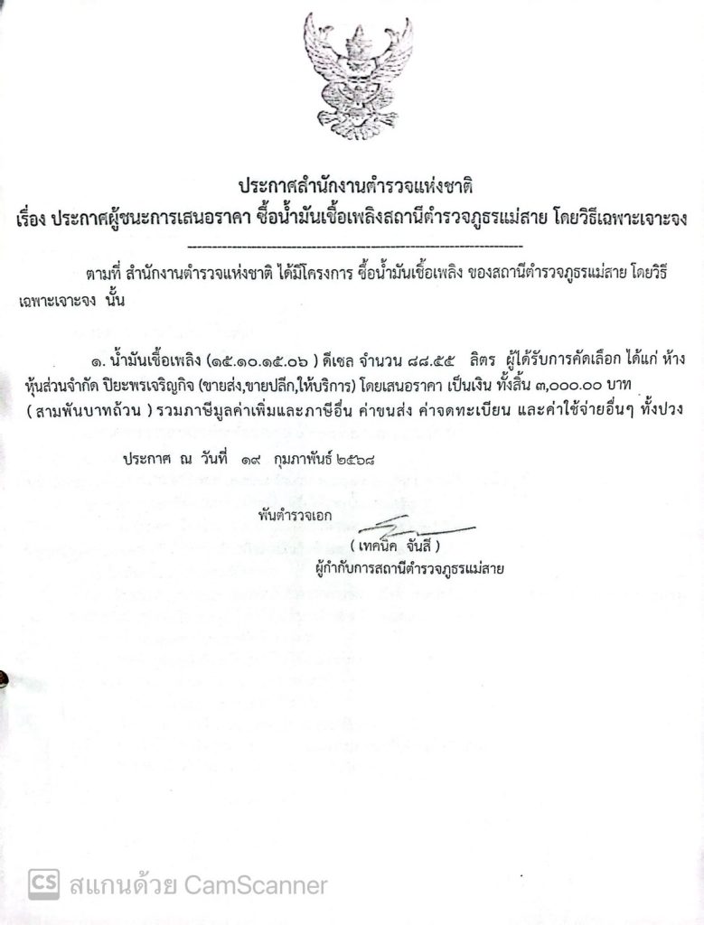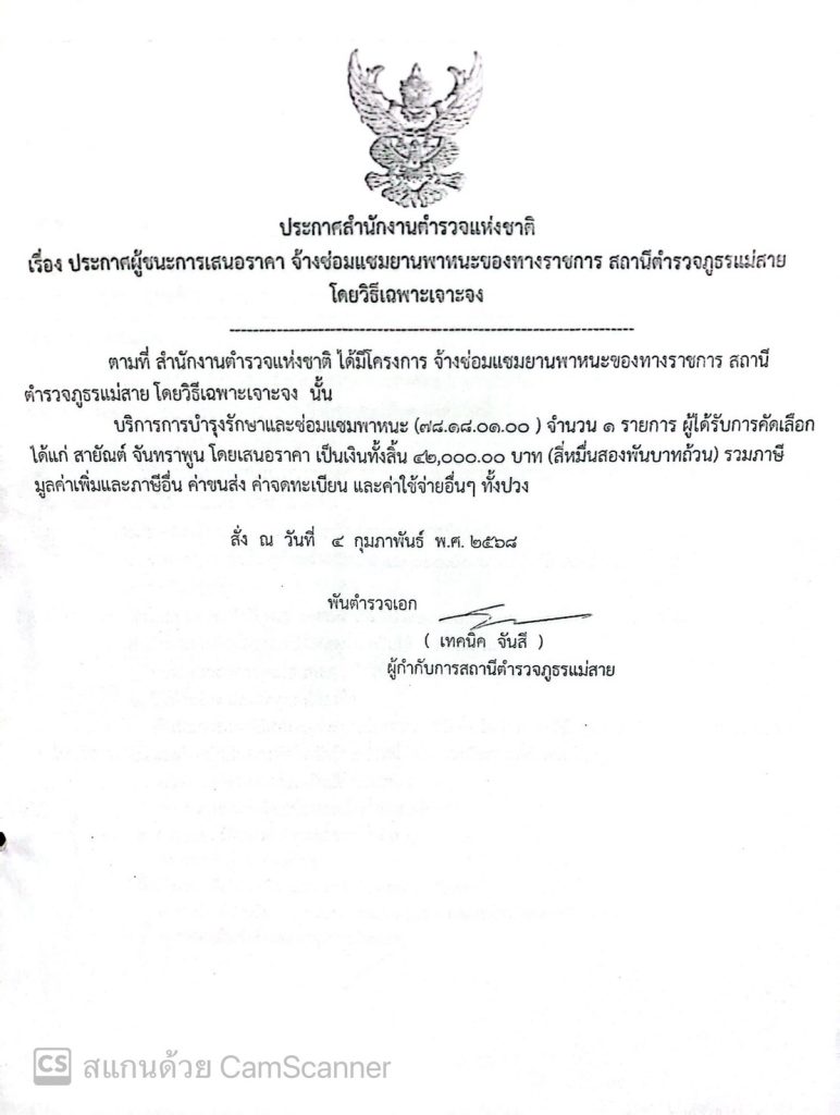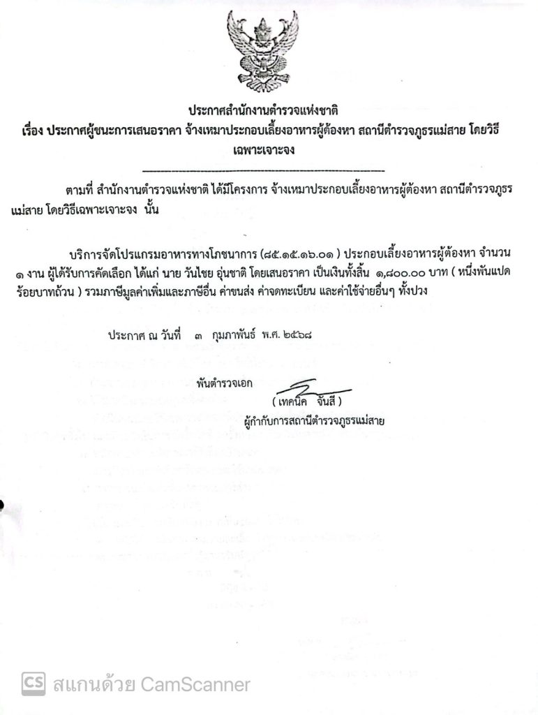 แจ้งผลการจัดซื้อจัดจ้างประจำเดือน กุมภาพันธ์ 2568