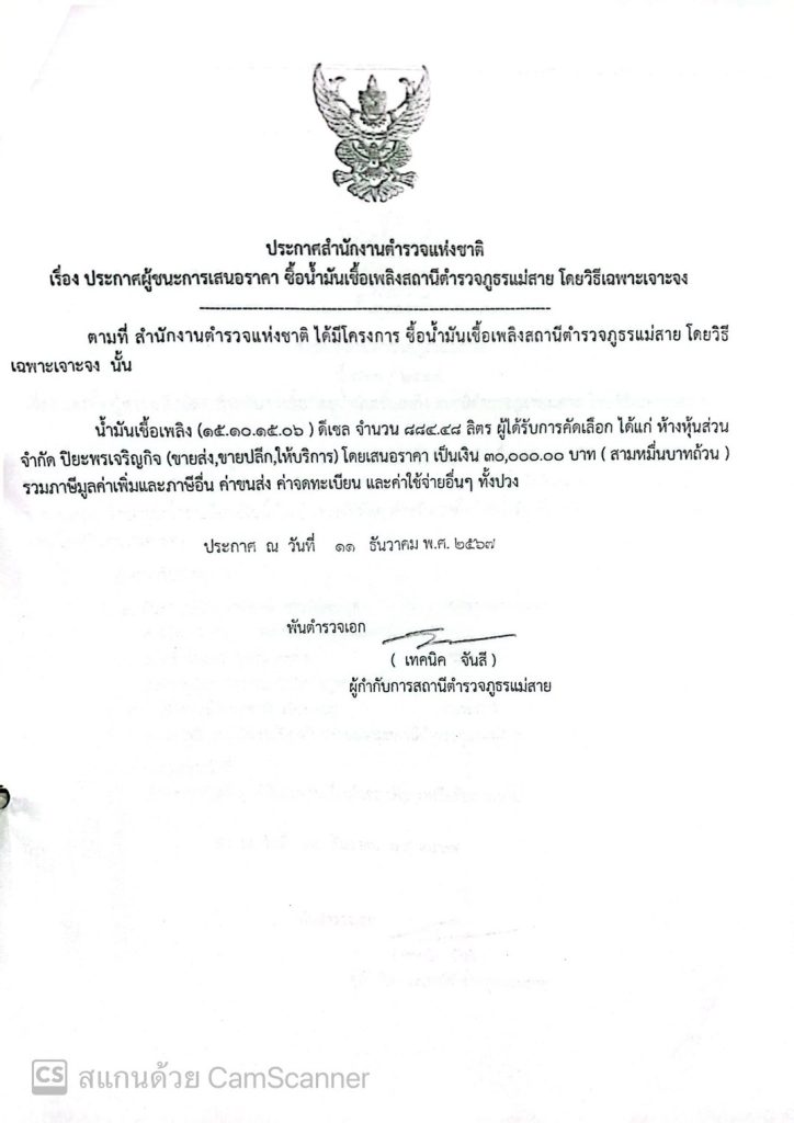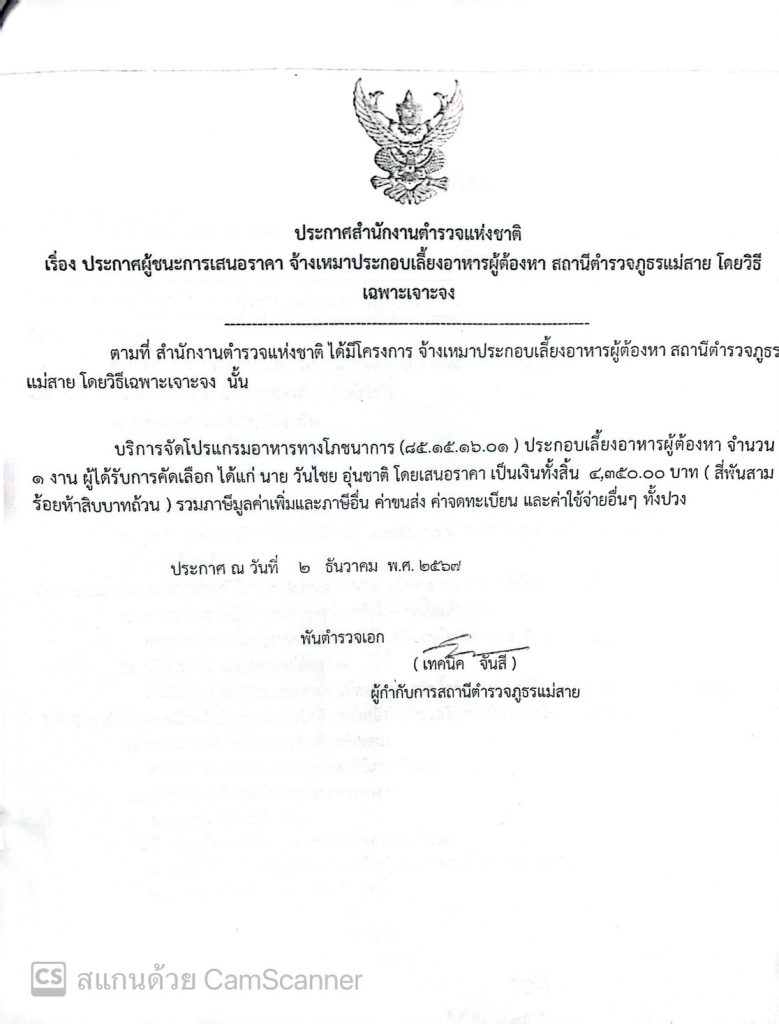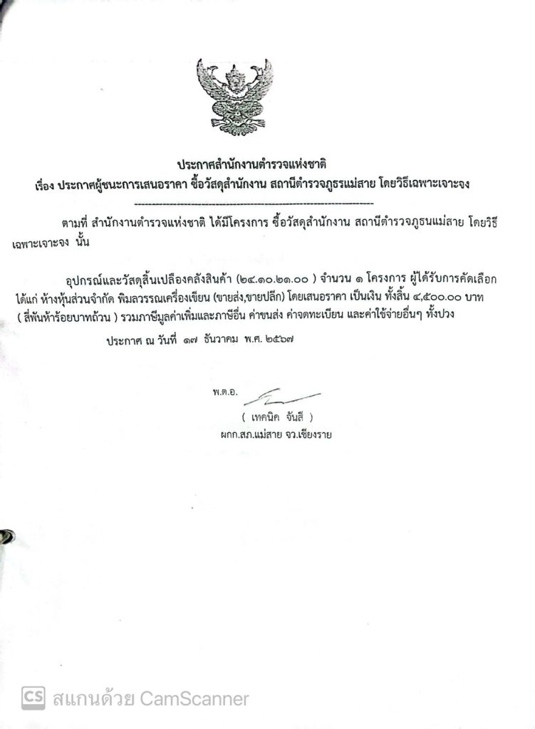 แจ้งผลการจัดซื้อจัดจ้างประจำเดือน ธันวาคม 2567