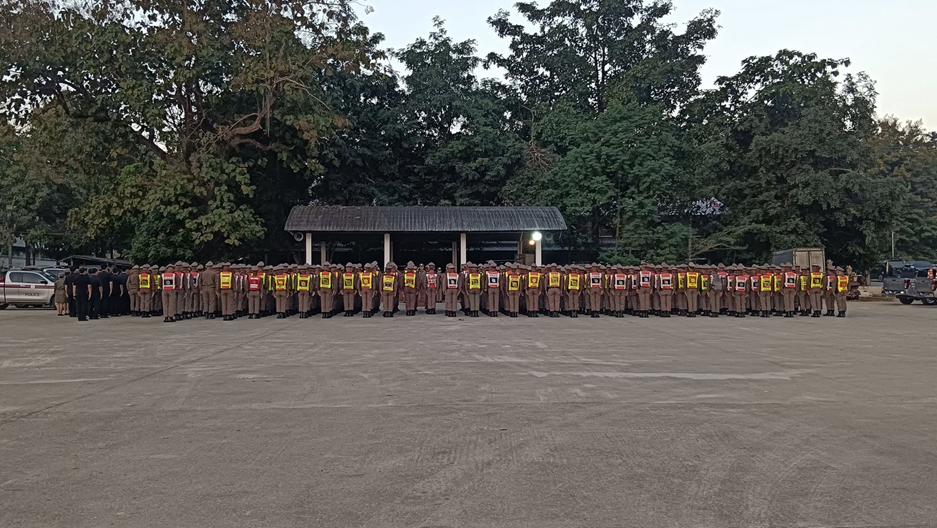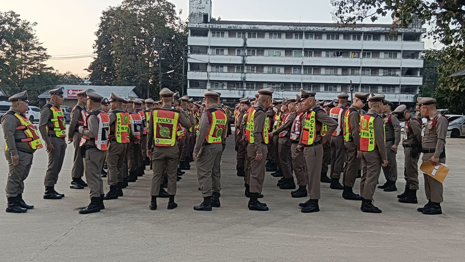 ณ ลานฝึกยุววรรณ สภ.แม่สาย โดยตรวจความพร้อม ของข้าราชการตำรวจผู้ปฏิบัติหน้าที่ ตรวจเครื่องแต่งกาย อุปกรณ์อื่นๆ และออก ปฏิบัติหน้าที่ประจำจุด ตั้งแต่เวลานี้