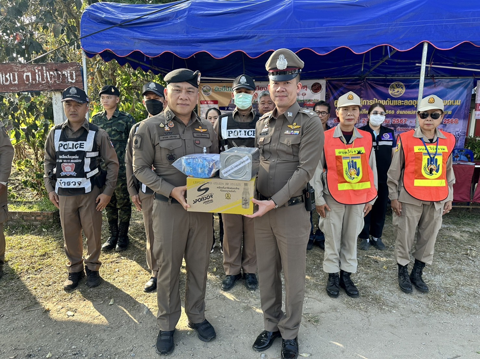 (1 ม.ค.68)เวลา 15.30 น. พล.ต.ต.มานพ เสนากูล ผบก.ภ.จว.เชียงราย ได้มาตรวจจุดตรวจบูรณาการร่วมโป่งงาม อ.แม่สาย จ.เชียงราย ช่วงเทศกาลส่งท้ายปีเก่าต้อนรับปีใหม่ พ.ศ.2568 พบ พ.ต.ท.ธนากร ธินะ รอง ผกก.ป.สภ.แม่สาย เจ้าหน้าที่ฝ่ายปกครอง เจ้าหน้าที่ สาธารณสุข เจ้าหน้าที่ตำรวจ อสม. อปพร.ต.โป่งงามและมีข้อสั่งการและแนะนำในการปฏิบัติหน้าที่ดังนี้