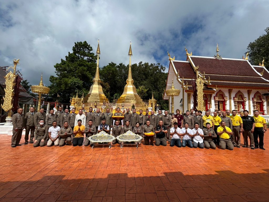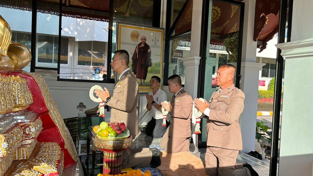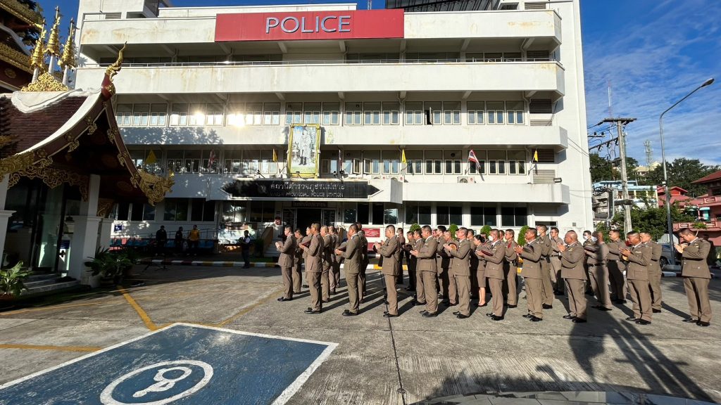 วันที่ 17 ตุลาคม 2566 เวลา 07.00 น. ณ ลานหน้าสถานีตำรวจภูธรแม่สาย พ.ต.อ.พิพัฒน์ นาระเดช ผกก.สภ.แม่สาย พร้อมด้วย พ.ต.ท.คมกฤช ไชยสาร รอง ผกก.ป.สภ.แม่สาย , พ.ต.ท.กุศลพันธุ์ สิงห์ใจ รอง ผกก.สส.สภ.แม่สาย ,พ.ต.ท.ณรงค์ศักดิ์ ยศแก้วอุด รอง ผกก.(สอบสวน) ฯ และข้าราชการตำรวจ สภ.แม่สาย แม่บ้านตำรวจ จัด พิธีทางศาสนา พิธีถวายคำสัตย์ปฏิญาณตนและกล่าวอุดมคติตำรวจ รับฟังสารของผู้บัญชาการตำรวจแห่งชาติ และร่วมบริจาคโลหิต ทำกิจกรรมบำเพ็ญประโยชน์ ณ วัดพระธาตุดอยตุง ต.ห้วยไคร้ อ.แม่สาย จ.เชียงราย เพื่อเป็นการระลึกถึงผู้ก่อตั้งกิจการตำรวจ และแสดงออกถึงความจงรักภักดี และยึดมั่นต่ออุดมการณ์ในการปฏิบัติหน้าที่ ในฐานะผู้พิทักษ์สันติราษฎร์