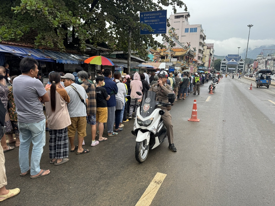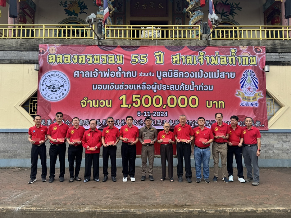 สภ.แม่สาย ภ.จว.เชียงราย วันที่ 6 ต.ค. 2567 เวลา 09.00 น. พ.ต.อ.เทคนิค จันสี ผกก.สภ.แม่สาย ,พร้อมด้วย พ.ต.ต.สันทัด ต่างเพ็ชร สวป.(ชส.)ฯ ,ชุด ชมส.ฯ ,ชุด จร. ร่วมกับ ศาลเจ้าพ่อถ้ำกบ และมูลนิธิกวงเม้ง มอบสิ่งของ และเงินช่วยเหลือผู้ประสบภัยน้ำท่วม(จำนวนยอด 700 คน โดยประมาณ) ณ ศาลเจ้าพ่อถ้ำกบ อ.แม่สาย จ.เชียงราย #ฉลองครบรอบ55ปีศาลเจ้าพ่อถ้ำกบ #มูลนิธิกวงเม้งแม่สาย