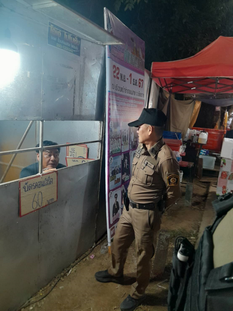 สภ.แม่สาย26พ.ย. 2567 ร.ต.อ.ศิริชัย โคตรสมบัติ รอง สวป.สภ.แม่สาย พร้อมสายตรวจรถจักรยานยนต์ ออกตรวจรักษาความปลอดภัย ดูแลความสงบเรียบร้อย ในงานกาชาด อำเภอแม่สาย เหตุการณ์ทั่วไปปกติ#งานกาชาดและของดีอำเภอแม่สาย ประจำปี 2567 วันที่ 22 พฤศจิกายนถึงวันที่ 1 ธันวาคม 2567 ณ บริเวณหน้าที่ว่าการอำเภอแม่สาย