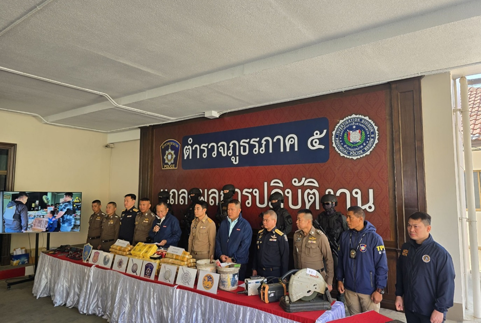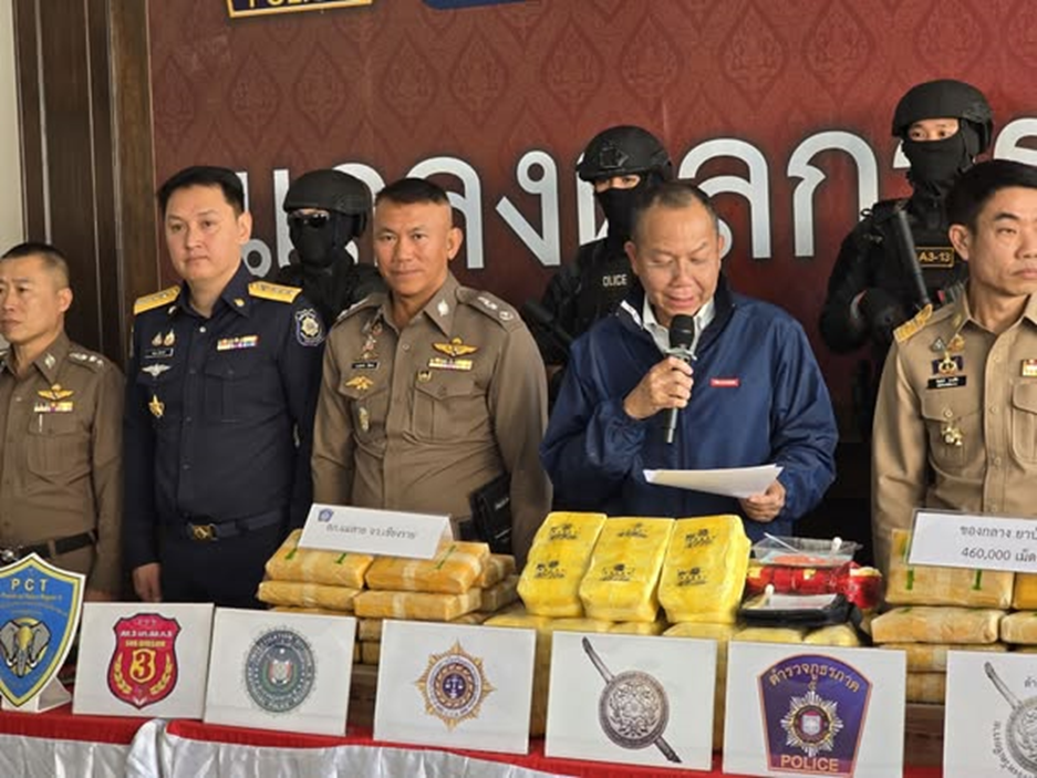 สภ.แม่สายนำของกลางยาบ้า 460,000 เม็ดร่วมแถลงข่าวที่ตำรวจภูธรภาค 5 25 ธ.ค.2567 โดยการอำนวยการของ พ.ต.อ.เทคนิค จันสี ผกก.สภ.แม่สาย มอบหมาย พ.ต.ท.กุศลพันธุ์ สิงห์ใจ รอง ผกก.สส.สภ.แม่สาย ,พ.ต.ต.วงศกร ธนานนทพันธ์ สวป.ฯ รรท.สว.สส.สภ.แม่สาย พร้อมด้วยเจ้าหน้าที่ชุดสืบสวน สภ.แม่สาย นำของกลางคดียาเสพติดรายสำคัญ ร่วมแถลงผลการปฏิบัติห้วงระดมกวาดล้างอาชญากรรมก่อนเทศกาลปีใหม่ ณ ตำรวจภูธรภาค5