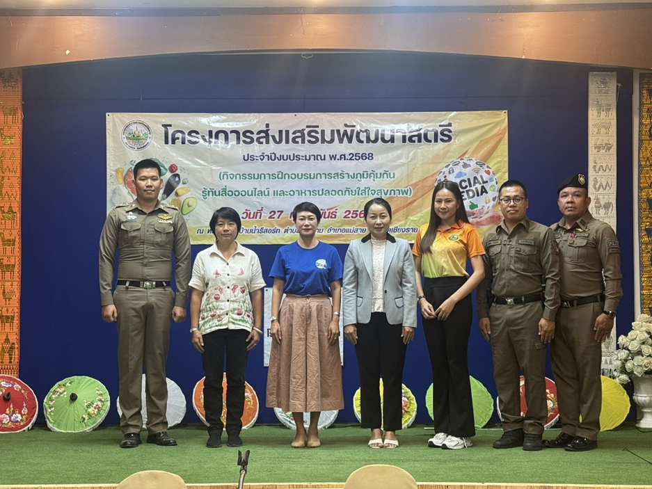 พ.ต.ต.สันทัด ต่างเพ็ชร สวป.(ชส.)ฯ , ร.ต.อ.ญาณวัตน ชัยชนะ รอง สว.(สอบสวน)สภ.แม่สาย พร้อมชุดมวลชนสัมพันธ์ เข้าร่วมพิธีเปิดโครงการส่งเสริมพัฒนาสตรีงบประมาณ พ.ศ.2568 “กิจกรรมการฝึกอบรมการสร้างภูมิคุ้มกันรู้ทันสื่อออนไลน์และอาหารปลอดภัยใส่ใจสุขภาพ” กิจกรรมครั้งนี้จัดขึ้นเพื่อให้ผู้เข้ารับการฝึกอบรม มีความรู้ ความเข้าใจในการใช้สื่อออนไลน์อย่างระมัดระวัง โดยมี ร.ต.อ.ญาณวัตน ชัยชนะ เป็นวิทยากรในการอบรม ในวันที่ 27 ก.พ. 2568 เวลา 13.00 น. ณ ห้องประชุมบ้านน้ำรีสอร์ท อำเภอแม่สาย จังหวัดเชียงราย