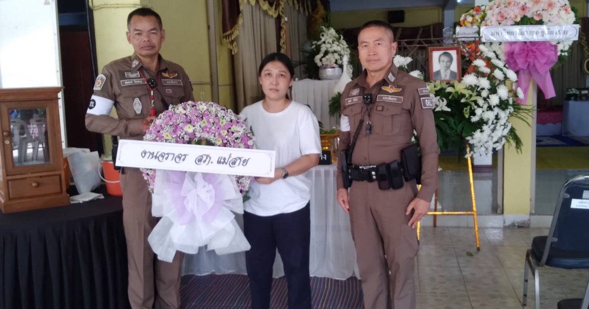 สภ.แม่สาย ขอส่งกำลังใจให้กับครอบครัว ของ ด.ต.เสกสรร ฟักแก้ว ข้าราชการตำรวจสังกัด สภ.แม่สาย ที่สูญเสีย คุณพ่อสุนทร ฟักแก้ว บิดา ซึ่งได้เสียชีวิต ศพตั้งบำเพ็ญกุศล ณ วัดบ้านดู่ ต.บ้านดู่ อ.เมือง จ.เชียงราย วันที่ 30 เมษายน – 3 พฤษภาคม 2567 มีพิธีสวดอภิธรรม ทุกคืน เวลา 19.30 น. กำหนดทำพิธีฌาปนกิจใน วันศุกร์ ที่ 3 พฤษภาคม 2567