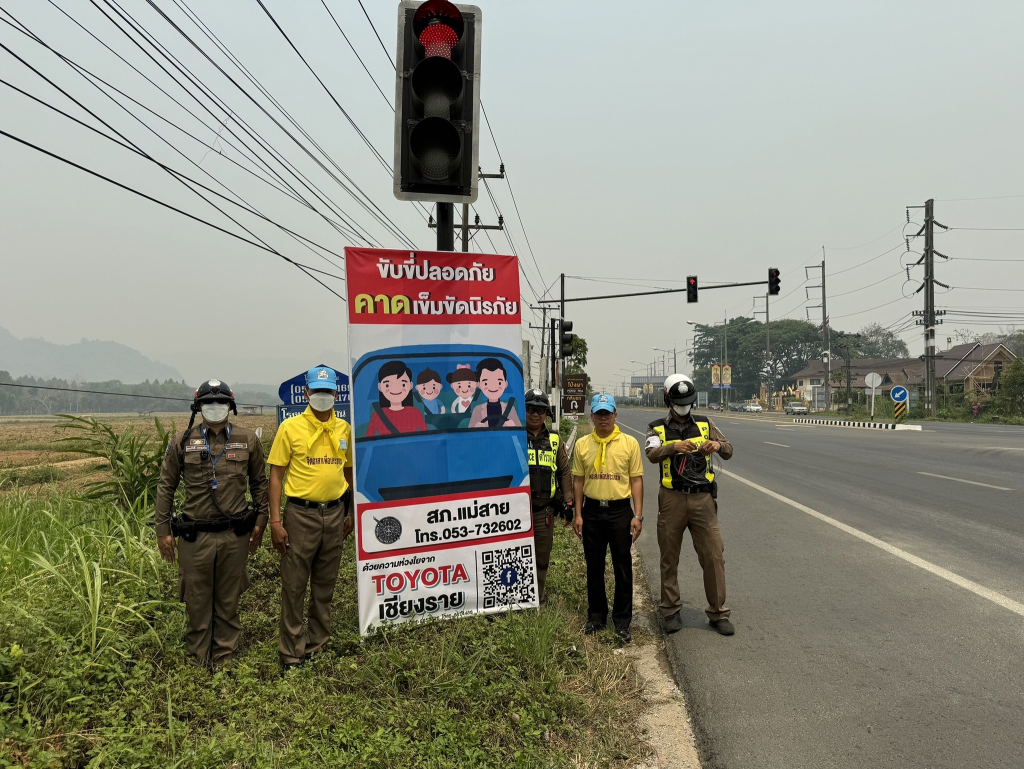 วันที่ 9 เม.ย. 2567 เวลา 10.00 น. โดยการอำนวยการของ พ.ต.อ.เทคนิค จันสี ผกก.สภ.แม่สาย , พ.ต.ท.ธนากร ธินะ รอง ผกก.ป.สภ.แม่สาย มอบหมายให้ พ.ต.ต.สันทัด ต่างเพ็ชร สวป.(ชส.)สภ.แม่สาย , ร.ต.อ.สมพงษ์ ไชยชมภู รอง สว.จร.ฯพร้อมชุด 60 ได้ร่วมกันเเจกเเผ่นพับเเละติดเเผ่นป้ายเตือนและประชาสัมพันธ์ให้กับประชาชนผู้ใช้รถใช้ถนน เพื่อป้องกันและลดอุบัติเหตุทางถนน ช่วงเทศกาลสงกรานต์ ประจำปี 2567